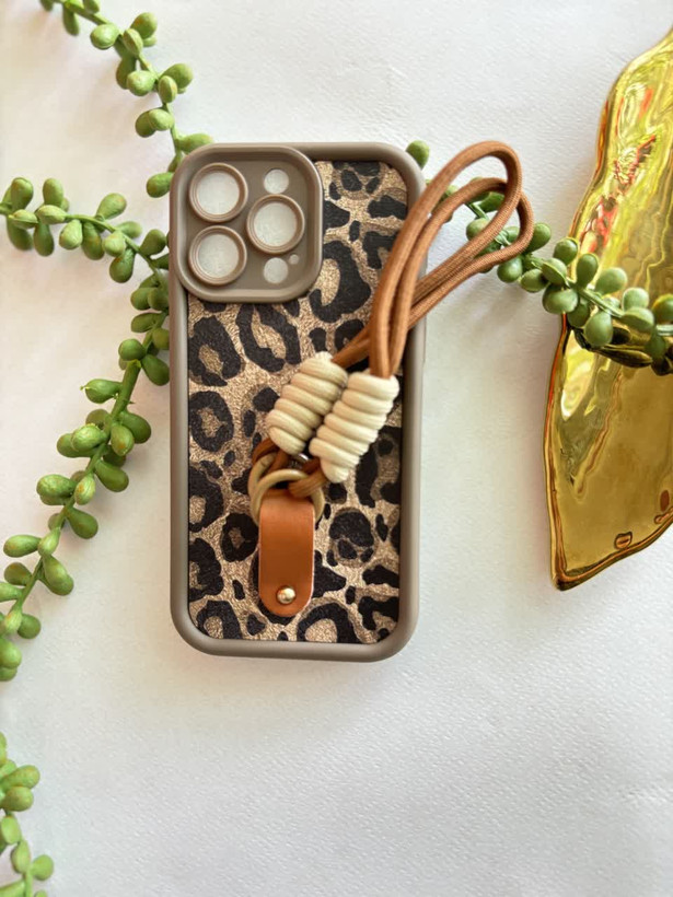 قاب کاور گارد پلنگی تیره با بند ست برای آیفون 15پرومکس IP 15PROMAX کد 1628